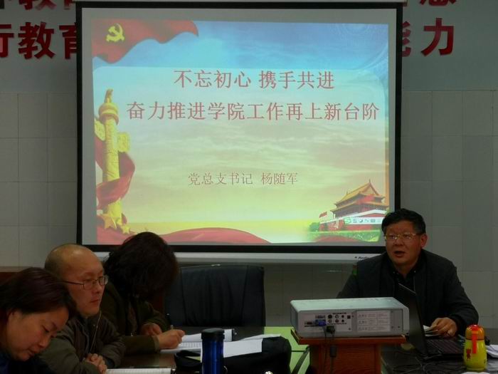 最后,党总支书记杨随军对本次大会做总结讲话。杨随军书记在充分肯定全体教职工在2018年取得一个又一个丰硕的成果的同时,向全体教职工提出了新的希望。