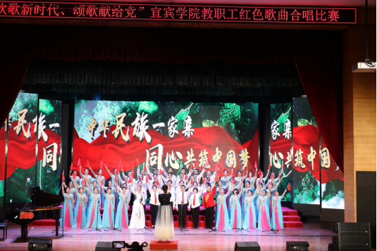 为庆祝中国共产党成立100周年,全面贯彻党的十九大和十九届二中、三中、四中、五中全会精神,深入学习贯彻习近平总书记关于工人阶级和工会工作的重要论述,贯彻落实省委十一届八次全会、全总十七届四次执委会和省总工会十四届四次全委会议精神,唱响爱党爱国爱社会主义的时代主旋律,展示新时代教职工风采风貌,教育学部于2021年6月16日下午在三平台演播厅参加由宜宾学院工会举办的“欢歌新时代,颂歌献给党”教职工唱红色歌曲合唱比赛。
