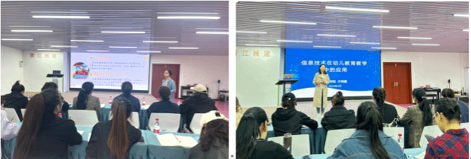 为期两天的回访中,许其鑫老师以《信息技术在幼儿教育教学中的应用》为题,结合《教师数字素养》文件精神,讲解微课设计与制作技巧,探讨人工智能时代幼儿教育的新路径,为老师们打开数字化教学的新视野。夏素荣老师聚焦幼儿教师的心理健康,通过《以画疗心:幼儿教师心理健康指导》讲座,传授了心理健康维护的知识与技巧,引导老师们通过多维添加画实践,亲身体验艺术治疗的力量,为构建幼儿园心理健康支持体系提供建议。李蓝老师从科研角度出发,细致讲解《课题结题报告的撰写》要点,提升老师的科研能力和结题报告撰写水平。