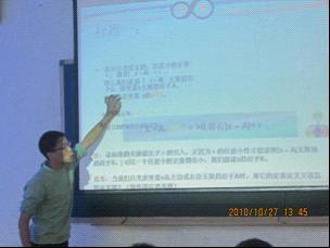 2010年10月27日下午13:40至16:00, 数学学院在三教楼501举行了教学基本功竞赛,数学学院相关老师及部分学生代表观摩了比赛。