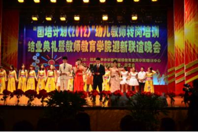 9月19日晚7:30,由四川省小学教师继续教育培训中心主办,教师教育学院团总支学生会协办的“国培计划(2012)幼师转岗培训班结业典礼暨教师教育学院迎新联谊晚会”于三平台演播厅拉开帷幕。参加此次晚会的有我校正厅级调研员、教师教育学院院长刘维鸿教授,宜宾学院副院长周广均教授,宜宾市教育局副局长,教师教育学院常务副院长杨随军副教授,教师教育学院党总支书记邱宏老师,教师教育学院党总支副书记赵政一教授,教师教育学院副院长李尚卫教授等领导以及教师教育学院部分老师,国培置换班全体学员和180名12级全体新生。