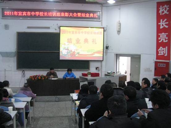 2011年12月20日上午11点,宜宾市2011年中学校长培训班表彰大会暨结业典礼在宜宾市四中第一学术报告厅隆重举行。