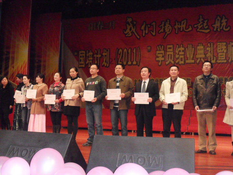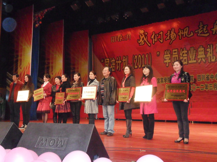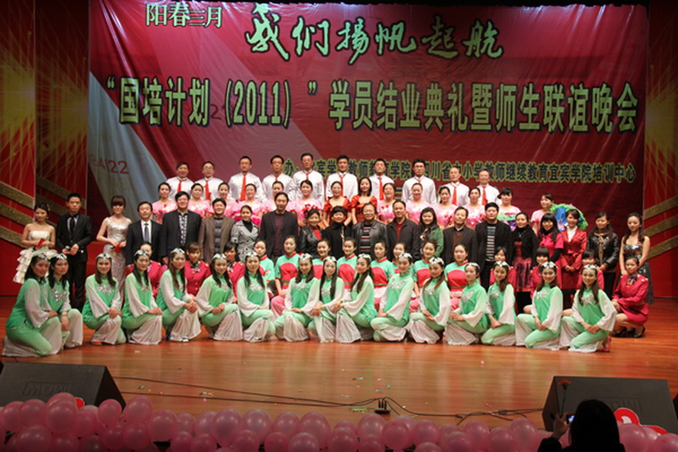 2012年3月29日晚,由教师教育学院及四川省中小学继续教育宜宾学院培训中心主办的“国培计划(2011)”学员结业典礼暨师生联谊晚会在学校演播厅隆重举行。校党委书记屈川、正厅级调研员刘维鸿、党委副书记毛克强,党委委员、组织部长华曦及各相关职能部门负责人出席典礼,教师教育学院各老师,宜宾、自贡、泸州三地教育局领导,宜宾市各实践基地幼儿园园长应邀参加了典礼仪式。
