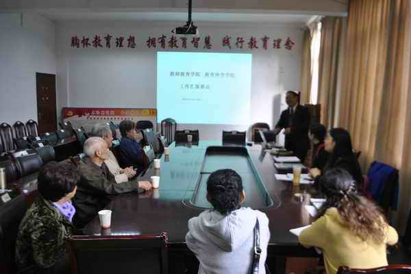 为进一步密切联系退休老同志,深入关心他们的晚年生活,向他们汇报教育科学学院工作情况,并聆听他们对教育科学学院发展建设的意见和建议,教育科学学院于2014年11月5日下午在本院会议室召开了教育科学学院第二届退休教职工座谈会。退休老同志傅朝鼎、向一村、唐芸等参加座谈会,教育科学学院党总支书记邱宏、院长何会宁、党总支副书记赵政一、副院长何奎莲及相关工作人员参会。