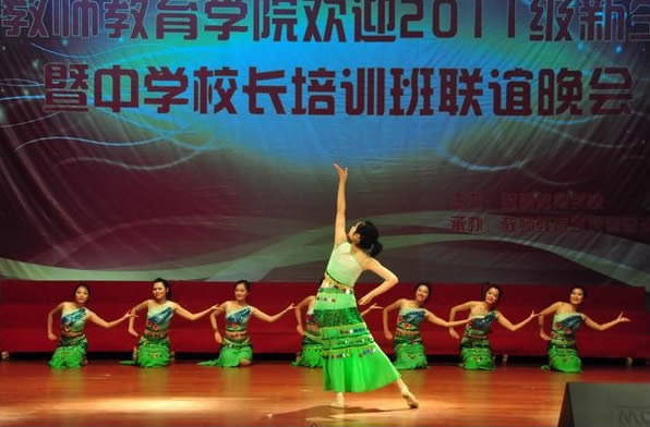 2011年12月9日晚7:30,由教师教育学院主办,教师教育学院团总支承办的“2011级迎新暨中学校长培训班、国培班联谊晚会”在三平台演播大厅隆重举行。校党委副书记、教师教育学院院长刘维鸿教授,常务副院长杨随军副教授,党总支书记邱宏老师,社科联常务副主席蒋泓洁副教授,副院长李尚卫教授、何奎莲副教授,宜宾市中学校长培训班全体学员,来自宜宾、泸州、自贡三地的“国培”班学员,以及教师教育学院全体新生参加了联谊晚会。