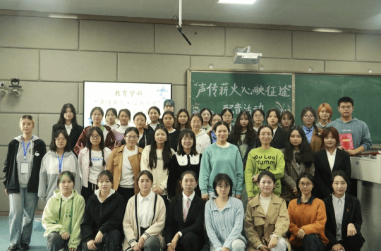 为深入开展学习贯彻习近平新时代中国特色社会主义思想主题教育工作会议精神,引导我部青年学子从革命先烈的筚路蓝缕中汲取精神力量,坚定理想信念,增强历史责任感和使命感,丰富我部学子文化生活,10月26日下午,教育学部于博雅楼B201开展“声传薪火,心映征途”红色配音活动。教育学部团总支书记唐辉、团总支副书记沈文静、辅导员杨云云、王勤、李佳欣、李璐出席本次活动。
