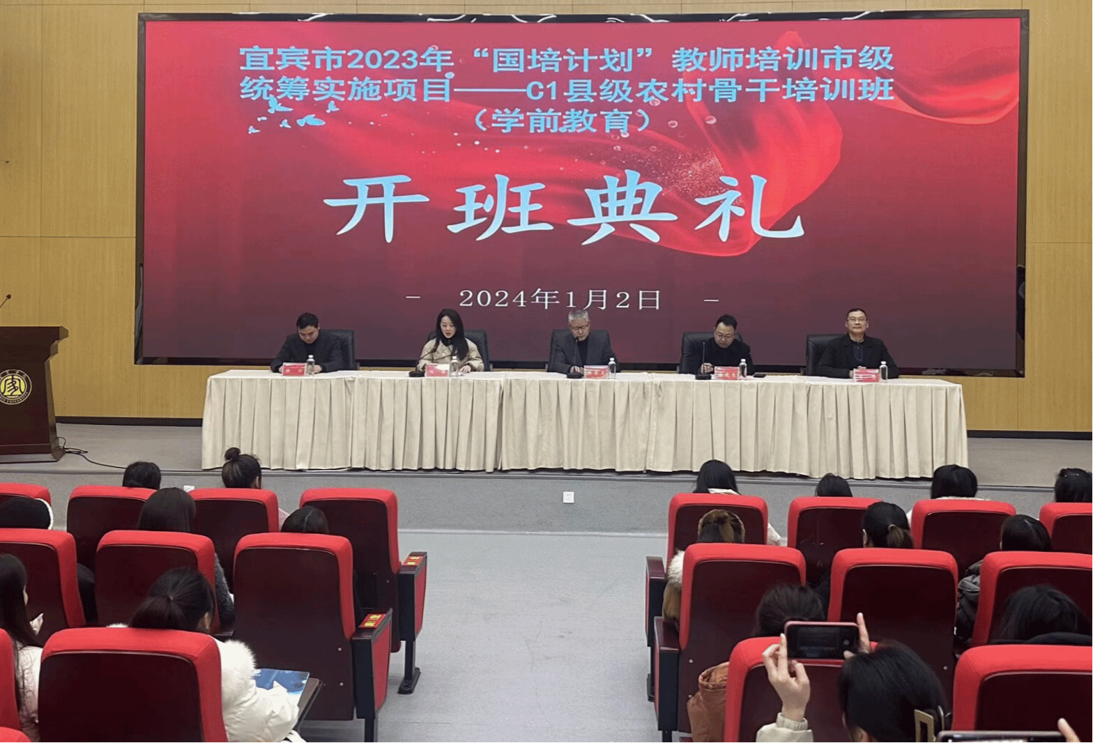 人勤春来早,奋进正到时。1月2日下午,2024年的第一个工作日,由宜宾学院教育学部组织的宜宾市2023年“国培计划”教师培训市级统筹实施项目——县级农村骨干培训班(学前教育)正式开班。来自宜宾市11个区县的50名学员相聚在此,拉开学习的帷幕。宜宾学院党委副书记、纪委书记徐其虎,宜宾市教育和体育局党组成员、机关党委书记潘晓东,宜宾学院教育学部党总支副书记(负责工作)刘薪、党总支副书记李伟、副部长杜江出席,典礼由刘薪主持。