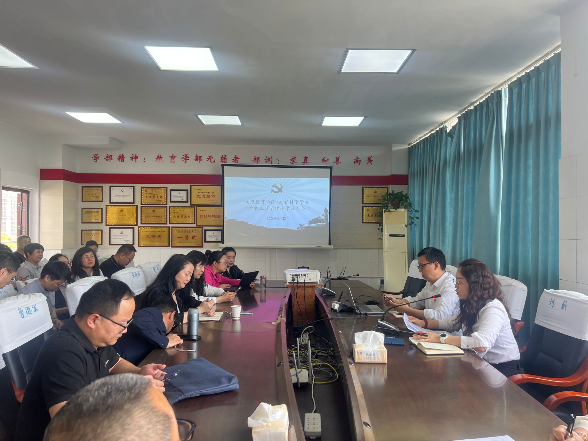 为深入贯彻落实安全隐患排查整治工作,切实筑牢学院安全稳定防线,2026年4月21日上午,教师教育学院党委在博雅楼B506会议室召开安全稳定工作大会,全面启动学院安全隐患排查整治工作。会议由学院党委书记刘薪主持,学院党政领导班子及全体教师参加会议。