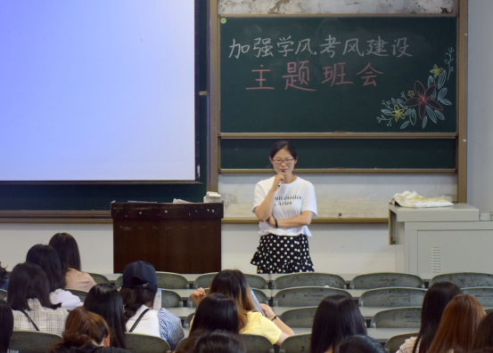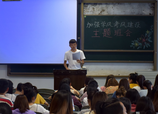 各班辅导员向同学们宣讲何为“学风”,何为“考风”,并强调加强“两风”建设的重要性和必要性,指出学生要规范自己,班级要有严明的纪律,浓厚的学习氛围和正确的舆论,要求同学们一定要严肃考风考纪,端正学习态度,告诫他们一定要诚信考试,并以往届学生因违反考纪而受到严肃处理的案例时刻警醒自己,不可触犯红线,造成无法挽回的后果。与此同时,各位辅导员也提醒同学们即使是在酷暑下也要好好复习,查漏补缺,争取在期末考出自己的真实水平,考出自己满意的成绩。