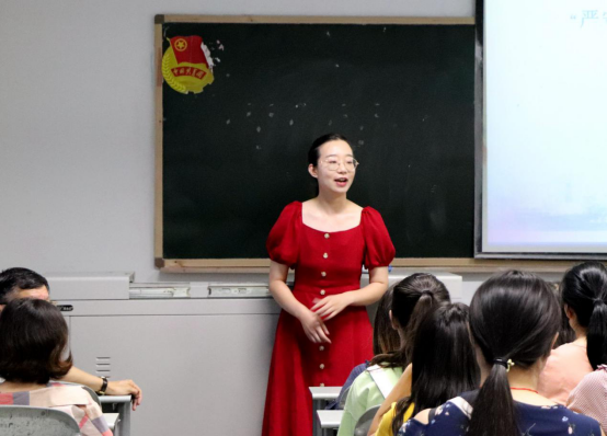 班会第一环节:优秀党员学生代表发言。廖蓉和吴月从自律和终生学习出发,讲述身为一名党员的基本要求,并鼓励其他同学积极入党。