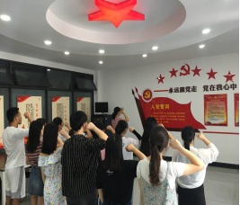 接着,新发展预备党员面对鲜红的党旗,在沈文静同志的领誓下,右手举拳,神情肃穆,声音洪亮,郑重宣读入党誓词。