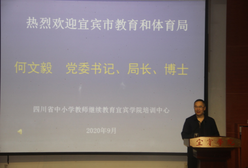 9月26日上午,宜宾市教育工委书记、市教育和体育局党委书记、局长何文毅博士在宜宾学院硕勋楼A101教室为校长培训班学员开设了题为《把握政策契机,顺应发展趋势,推动宜宾市教育高质量发展》的讲座。
