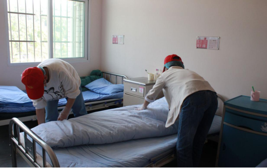 教育学部的大学生志愿者们同病人们一起表演节目。精彩的表演给病人及医护人员带来了欢笑。随后,志愿者们分为两组,一组在医护人员指导下打扫病人们的寝室卫生;另一组与病人们一起游戏并制作简易手工品。志愿者们与病人们近距离接触,收获的是一份可贵的情谊。