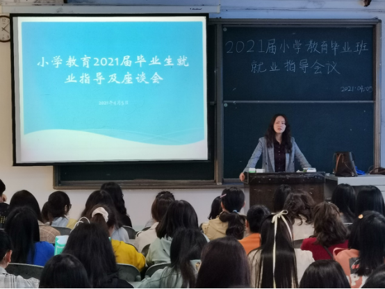 为进一步推动毕业生就业工作,帮助学生了解就业形势、转变就业观念、增强择业意识、提升就业能力,促进充分就业,2021年4月5日下午16:00教育学部在一教202举办了“小学教育2021届毕业生就业指导及座谈会”,党总支副书记刘薪、小学教育教研室主任吴洪、毕业班辅导员杨云云老师参加了此次座谈会。