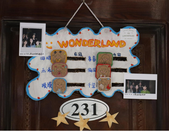 在此之前,同学们精心准备得为这次比赛做好准备,各个参赛寝室都整齐干净、风格不一,墙上的贴纸、书画作品、手工作品及门口的手工对联无不体现着教育学部的专业特色。