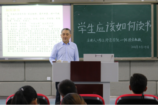 为提高学生的读书能力,让学生懂得读书的意义,教育学部特邀内江师范学院教育科学学院教授陈理宣于2021年5月24日上午9:00在博雅楼B座201教室开展了“学生应该如何读书”专题讲座。