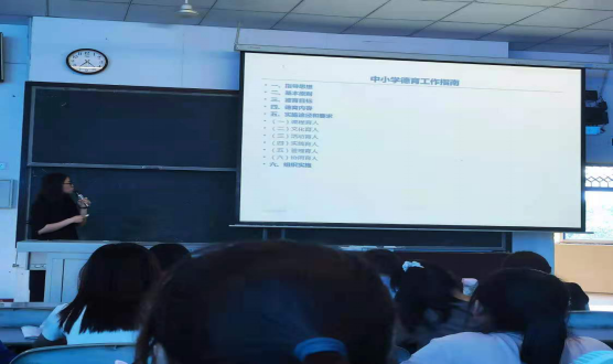 郑老师表示,德育的范围很广,可以从实践的方向去认识。她从中小学德育工作指南中的“活动育人”部分为大家做了简要的分析,并告诉大家,想要做好一名教师,就要了解国家的大政方针政策,了解德育。