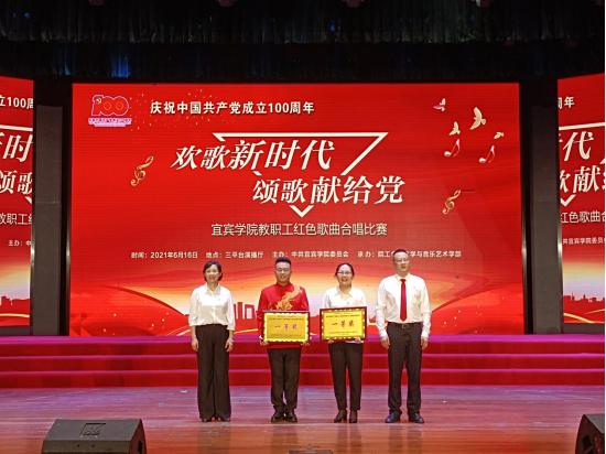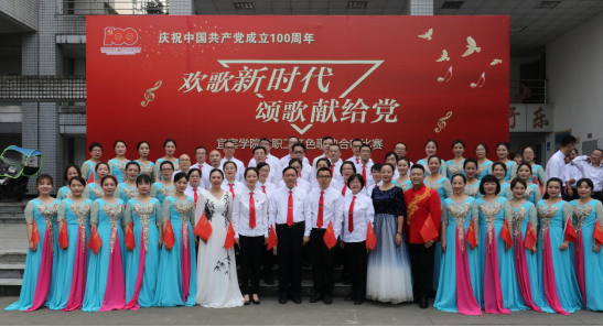 为庆祝中国共产党成立100周年,全面贯彻党的十九大和十九届二中、三中、四中、五中全会精神,深入学习贯彻习近平总书记关于工人阶级和工会工作的重要论述,贯彻落实省委十一届八次全会、全总十七届四次执委会和省总工会十四届四次全委会议精神,唱响爱党爱国爱社会主义的时代主旋律,展示新时代教职工风采风貌,教育学部于2021年6月16日下午在三平台演播厅参加由宜宾学院工会举办的“欢歌新时代,颂歌献给党”教职工唱红色歌曲合唱比赛。