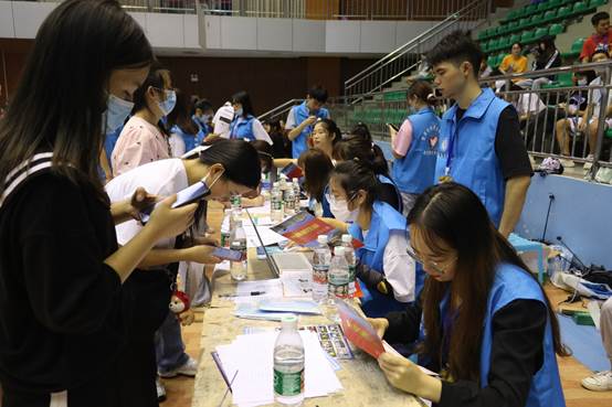 新生报到期间,身穿蓝马甲的志愿者们认真核对新生信息,积极主动为新生提供帮助,让舟车劳顿的新生及其陪伴前往的家长感受到了老师和学生们的热情与温暖,也展示了教育学部团总支学生会在工作中尽心尽力的风采。