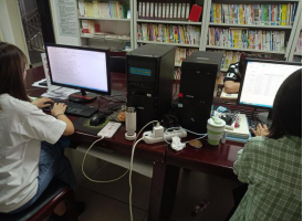 杨玉梅、翟香玲协助指导老师进行疫苗接种人员信息的统计。