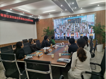 第二,针对人民路小学对完美校园的介绍,翠屏区教师培训中心刘川老师提出问题,你们对“完美校园”是怎样界定?人民路小学的熊继华校长和陈刚校长都做出了完整且恰当的回答。随后,王艳梅老师介绍了自己所带班级的班会课,名称是“放飞快乐燕”。此外,人民路小学的老师播放班级党史馆的相关视频给师培中心的各位领导观看。