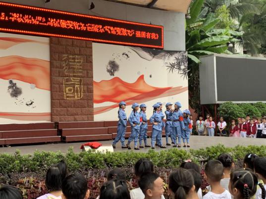(一)首先三年级二班的同学表演了《请党放心,强国有我》的合唱情景剧,同学们稚嫩的声音唱出了对祖国的热爱,情景剧生动的展现了革命战争年代,女战士们的飒爽英姿。