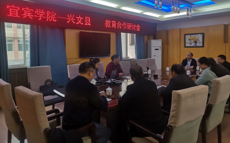 2021年2月25日上午,宜宾学院教育学部党总支书记、部长何会宁带领小学教育专业教师胡洁、周思其前往宜宾市兴文县二中开展校地教育合作的调研。兴文县董晓莉副县长、教育和体育局局长张强、副局长罗先贵、兴文二中校长袁小平、副校长曾学高,以及香山民族初级中学校长陈铸、副书记陈革出席了此次调研活动。