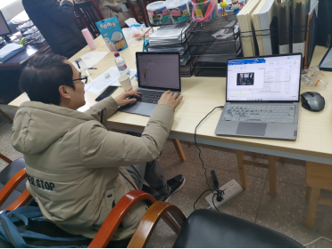 2021年12月5日上午9点30分,吴洪主任带领小学教育专业的部分老师在博雅楼B403b进行加班。