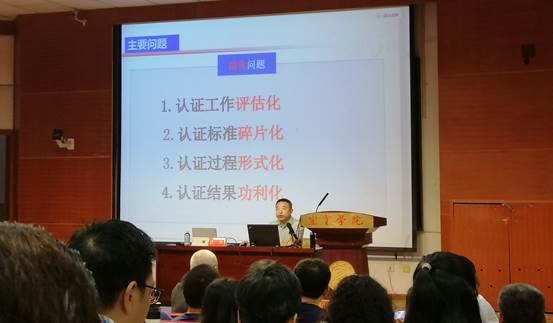 在三个小时的讲座中,沈军博士从“关于认证新要求”、“关于深化认识问题”、“关于培养体系问题”、“关于质量保障问题”“关于认证材料问题”五个方面展开了详细解读。会后,参会老师都表示自己受益匪浅,对师范类专业认证新要求有了更深的了解。